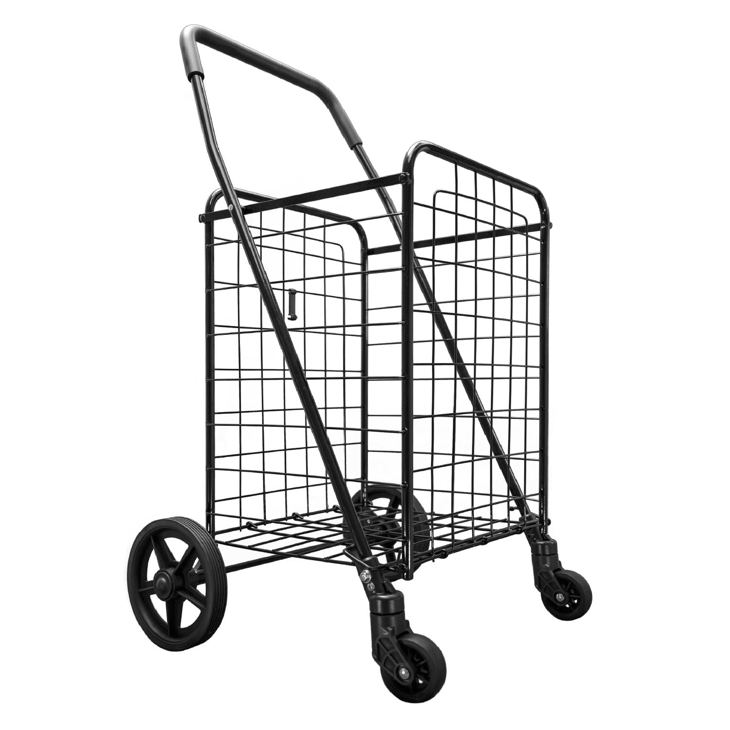 Folding Shopping Cart with Patent Pending Swivel Wheels and Single Basket, Medium Black S-2142