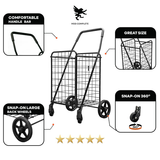 Folding Shopping Cart with Patent Pending Swivel Wheels and Single Basket, Medium Black S-2142