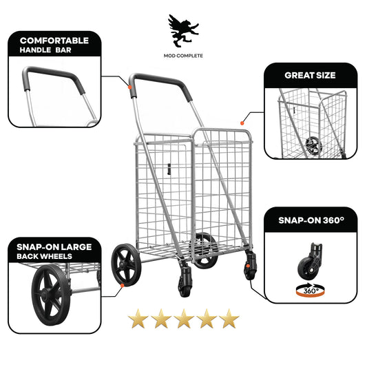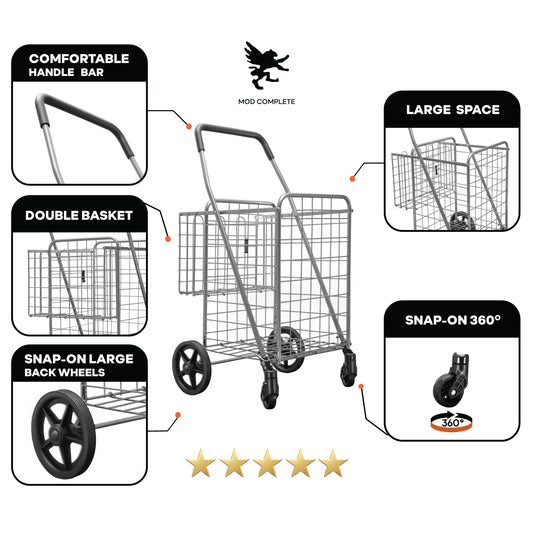Folding Shopping Cart with Patent Pending Swivel Wheels and Double Basket, Large S-2081