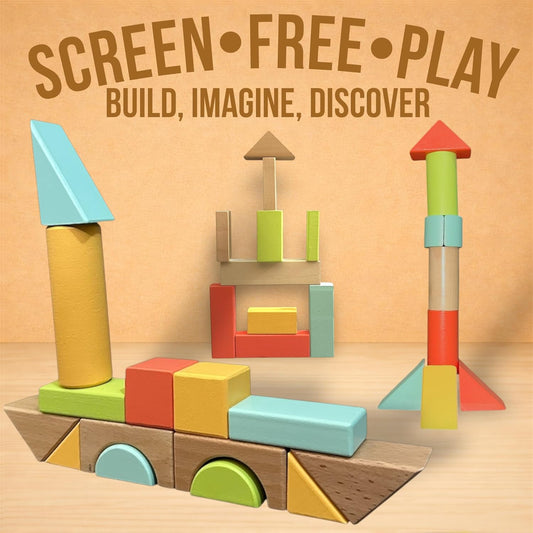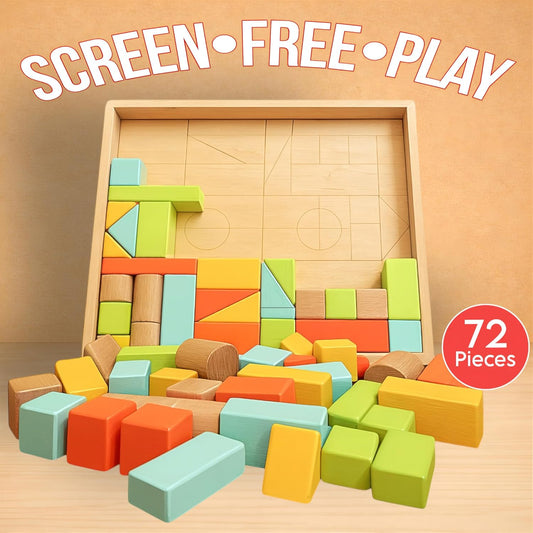 MOD 100-Piece Wood Building Blocks Set — Includes Heavy Duty Shape-Sorter Lid & Storage Bucket Pastel Color Wooden Blocks, Educational Screen-Free Toy for Toddlers Ages 1 2 3